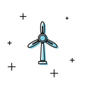 wektor ikony turbiny wiatrowej z koncepcji Dnia Matki Ziemi. Cienka ilustracja skoku edytowalnego turbiny wiatrowej. Liniowy znak turbiny wiatrowej do stosowania w aplikacjach internetowych i mobilnych, logo, mediach drukowanych.