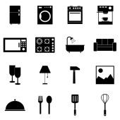 Urządzenia elektryczne elektryczne stałe ikony, Urządzenia gospodarstwa domowego wektor ikony zestaw, Ilustracja wektora, Urządzenia symbol lub logo wektor zestaw, Urządzenia elektryczne stałe ikony projektu