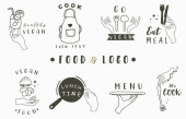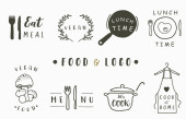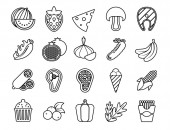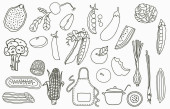 Czarny doodle obect z chlebem, popcornem, lodami, dynią.Wektor ilustracji na ikonę, logo, tatuaż, akcesoria i menu