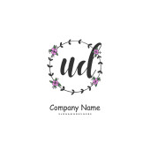 U D UD Wstępne pismo i projekt logo podpisu z okręgiem. Piękny projekt ręcznie pisane logo mody, zespołu, ślubu, luksusowe logo.
