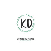 K D KD Wstępne pismo i projekt logo podpisu z okręgiem. Piękny projekt ręcznie pisane logo mody, zespołu, ślubu, luksusowe logo.