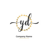 Y D YD Wstępne pismo i projekt logo podpisu z okręgiem. Piękny projekt ręcznie pisane logo mody, zespołu, ślubu, luksusowe logo.