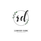 R D RD Projekt wstępnego pisma i logo podpisu z okręgiem. Piękny projekt ręcznie pisane logo mody, zespołu, ślubu, luksusowe logo.