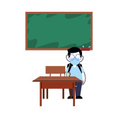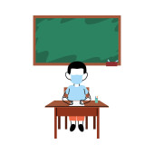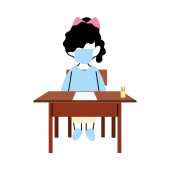 dziewczyna z maską na biurku w klasie