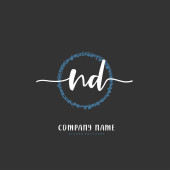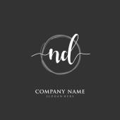 N D ND Wstępne pismo i projekt logo podpisu z okręgiem. Piękny projekt ręcznie pisane logo mody, zespołu, ślubu, luksusowe logo.