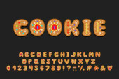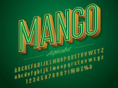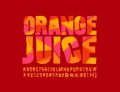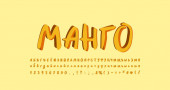 Nowoczesna alfabetowa czcionka pędzla. Duże i małe litery, cyfry. Oryginalny styl literowania dla marketingu żywności mango. Ilustracja wektora.