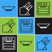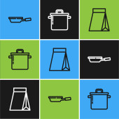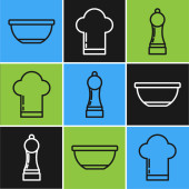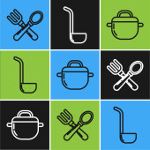 Zestaw linii Spatula, Nóż i kuchnia ikona Colander. Wektor