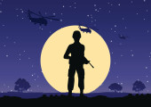 Zdjęcie "żołnierz z karabinem i sylwetką śmigłowca w nocy" może być wykorzystywane do celów osobistych i komercyjnych zgodnie z warunkami zakupionej licencji Royalty-free. Obraz jest dostępny do pobrania w jakości wysokiej rozdzielczości do 5760x3840.
