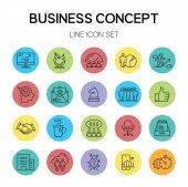 zestaw symboli ikony linii, finanse rozwój biznesu i koncepcja inwestycyjna, izolowany płaski zarys projektu wektora
