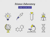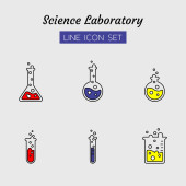 zestaw symboli ikon stałych, koncepcja sprzętu laboratoryjnego do badań chemii testowej, rurka szklana, woda gotowana, izolowana konstrukcja wektora płaskiego