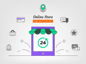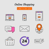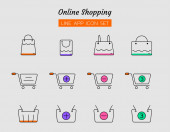 zestaw symboli ikony linii, uniwersalne zastosowanie sklep internetowy koncepcja rynku, odizolowany płaski zarys projektu wektora