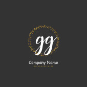 G GG Wstępne pismo i projekt logo podpisu z okręgiem. Piękny projekt ręcznie pisane logo mody, zespołu, ślubu, luksusowe logo.