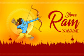 Lord Rama z łukiem strzałki w Shree Ram Navami tle uroczystości na religijne święto Indii