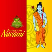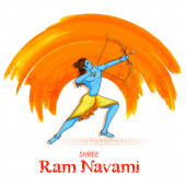 Lord Rama z łukiem strzałki w Shree Ram Navami tle uroczystości na religijne święto Indii