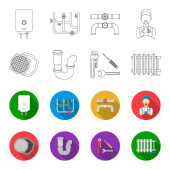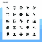 Ikony linii urządzeń sanitarnych i hydraulicznych zawierają toaletę, zlewozmywak, wannę, rurę, licznik wody i wiele innych. Edytowalny skok.