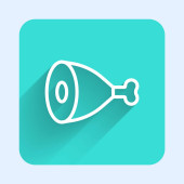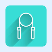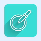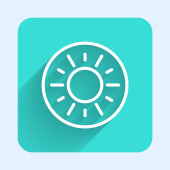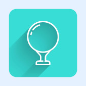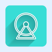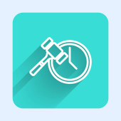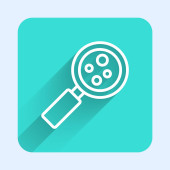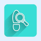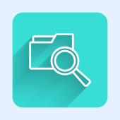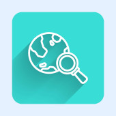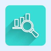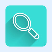 Biała linia Powiększenie szklanej ikony odizolowanej długim cieniem. Wyszukiwanie, skupienie, zoom, symbol biznesu. Zielony kwadrat. Wektor