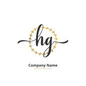 H G HG Wstępne pismo i projekt logo podpisu z okręgiem. Piękny projekt ręcznie pisane logo mody, zespołu, ślubu, luksusowe logo.