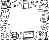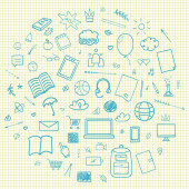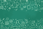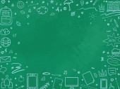 Wracać do szkoły. Abstrakcyjna tablica. Szkicowe tło z ręcznie rysowanych materiałów szkolnych