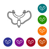 Zdjęcie "Kolorowa ikona procy odizolowana na białym tle. Ustaw ikony w przyciskach koła. Wektor" może być wykorzystywane do celów osobistych i komercyjnych zgodnie z warunkami zakupionej licencji Royalty-free. Obraz jest dostępny do pobrania w jakości wysokiej rozdzielczości do 5760x3840.