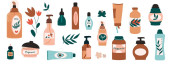 Wielki zestaw piękności. Pielęgnacja skóry i znaki urody, salon spa i ikony samoopieki. Wektor płaska ręka rysowana ilustracja.