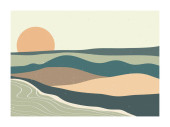 Modny minimalistyczny krajobraz abstrakcyjny współczesny kolaż, góry jezioro zachód słońca ściana sztuka plakat projekt