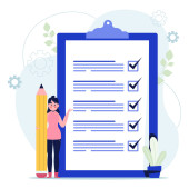 Zdjęcie "Kobieta z dużym ołówkiem, liśćmi i frontem. Rzeczy do zrobienia na papierze, strona z zadaniami roboczymi w płaskiej ilustracji wektora" może być wykorzystywane do celów osobistych i komercyjnych zgodnie z warunkami zakupionej licencji Royalty-free. Obraz jest dostępny do pobrania w jakości wysokiej rozdzielczości do 5760x3840.