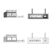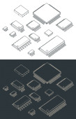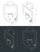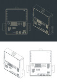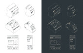 Stylizowana ilustracja wektorowa na tamie automatycznych systemów sterowania procesem, sterowników krokowych i ruchowych do produkcji