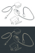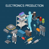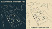 Stylizowana wektorowa ilustracja zestawu podzespołów elektronicznych do edukacji inżynierów elektroniki i entuzjastów elektroniki