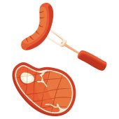 Zdjęcie "Kiełbasa, steki i rozmaryn na białym, izolowanym tle. Barbeque mięso na zaproszenie lub karty upominkowej, notatnik, logo grill bar, album z wycinkami. Etui telefoniczne lub odcisk tkaniny. Płaski styl ilustracja wektor akcji" może być wykorzystywane do celów osobistych i komercyjnych zgodnie z warunkami zakupionej licencji Royalty-free. Obraz jest dostępny do pobrania w jakości wysokiej rozdzielczości do 5760x3840.