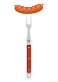 Smażona kiełbasa na widelcu na białym, odizolowanym tle. Barbeque mięso na zaproszenie lub karty upominkowej, notatnik, logo grill bar, album z wycinkami. Etui na telefon lub płótno. Płaski styl ilustracja wektor akcji