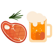 Zdjęcie "Smażony stek i szklanka piwa na białym odosobnionym tle. Barbeque mięso na zaproszenie lub karty upominkowej, notatnik, logo grill bar, album z wycinkami. Telefon przypadku lub tkaniny druku Płaski styl wektor czas ilustracji" może być wykorzystywane do celów osobistych i komercyjnych zgodnie z warunkami zakupionej licencji Royalty-free. Obraz jest dostępny do pobrania w jakości wysokiej rozdzielczości do 5760x3840.