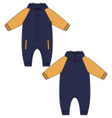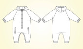 Zdjęcie "Kombinezon z kapturem z długim rękawem z uroczym zdobieniem dla maluszka Widok z przodu i z tyłu." może być wykorzystywane do celów osobistych i komercyjnych zgodnie z warunkami zakupionej licencji Royalty-free. Obraz jest dostępny do pobrania w jakości wysokiej rozdzielczości do 5760x3840.