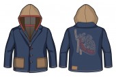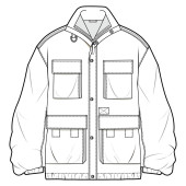 Zakapturzona sportowa kurtka z zamkiem błyskawicznym i kieszeniami. Widok z przodu i z tyłu.