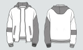 Zdjęcie "Zakapturzona sportowa kurtka z zamkiem błyskawicznym i kieszeniami. Widok z przodu i z tyłu." może być wykorzystywane do celów osobistych i komercyjnych zgodnie z warunkami zakupionej licencji Royalty-free. Obraz jest dostępny do pobrania w jakości wysokiej rozdzielczości do 5760x3840.