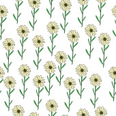 Kosmos kwiat wektor bezszwowy patern, pomarańczowy strony rysować ilustrację dla projektu i kreatywności