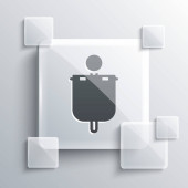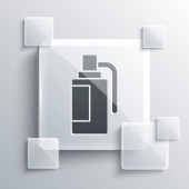 Puszka Grey Soda z ikoną słomki odizolowanej na szarym tle. Szklane panele. Ilustracja wektora