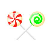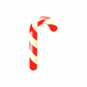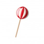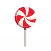 Izolowany lizak kreskówkowy z czerwonymi paskami na białym tle.