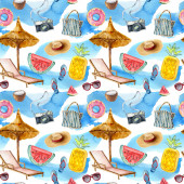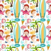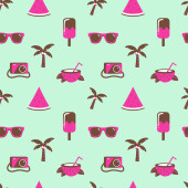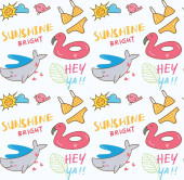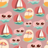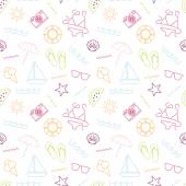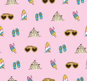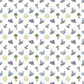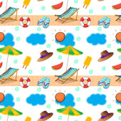 ładny bezszwowy wektor ilustracja z ikon letnich, kapelusze, słońce i wakacje