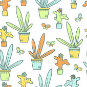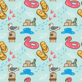 ładny bezszwowy wektor ilustracja z letnim słońcem, rośliny, tęcze