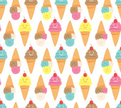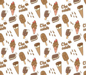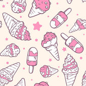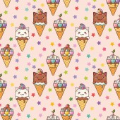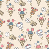 ładny wektor bez szwu ilustracja z ikonami żywności, ciasta, lody