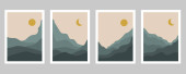 Zestaw modnych minimalistycznych krajobrazów abstrakcyjne współczesne kolaże, góry jezioro księżyc ściana sztuka plakat projekt