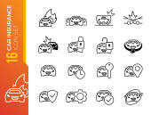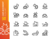 Zestaw ikon grypy. Kolekcja linearnych prostych ikon internetowych, takich jak maska medyczna, wirus grypy, covid-19, objawy, leczenie, zapobieganie, antyseptyczne, zakażenie koronawirusami i inne