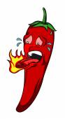 Cute Red Hot Chili postacie z kreskówek Projekt ilustracji, Chili Pieprz Maskotka oddech ogień z zarysowanym stylu wektor szablonu