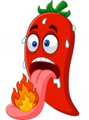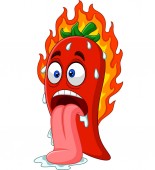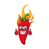 Cute Red Hot Chili postacie z kreskówek Projekt ilustracji, Maskotka papryki chili z ogniem z zarysowanym stylu wektor szablonu