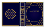 Standardowa okładka książki i konstrukcja kręgosłupa. Stare ozdoby retro. Royal Golden i granatowy design stylu. Zabytkowa granica do wydrukowania na okładkach książek. Ilustracja wektora
