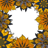Wektorowa ilustracja kwiatowej ramki na białym tle. Rysunek ręcznie jesienią żółte elementy roślin w stylu doodle. Projekt dekoracyjny pocztówki.