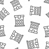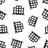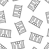 Ikona budynku w płaskim stylu. Miasto drapacz chmur mieszkanie wektor ilustracja na białym odizolowanym tle. Wieża miasta płynny wzór koncepcji biznesowej.
