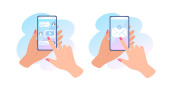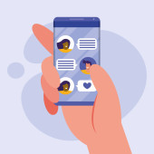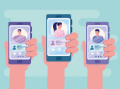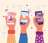 trzymanie rąk, wiadomości czatu online i poczta powiadomień w smartfonach