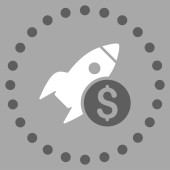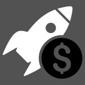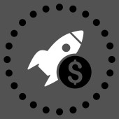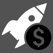 Wystrzelenie rakiety ze znakiem dolara. Ikona kosztów uruchomienia.