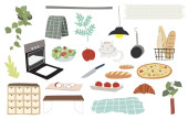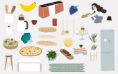 kolekcja logo kuchni i gotować z butelką, róża, grzyb, patelnia, jajko.Wektor ilustracji ikona, logo, naklejka, nadruk i tatuaż